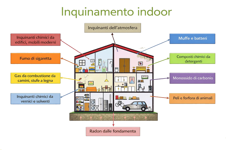 La qualità dell’aria negli ambienti chiusi è uno degli aspetti più importanti per il benessere delle persone, sia nelle abitazioni, sia nei luoghi di lavoro o pubblici. L’aria interna può contenere polveri, particolato, VOC emessi da materiali e finiture, fumo, agenti irritanti e bio-aerosol come spore di muffa, acari e batteri. Queste componenti possono contribuire allo sviluppo dei sintomi tipici della SBS.